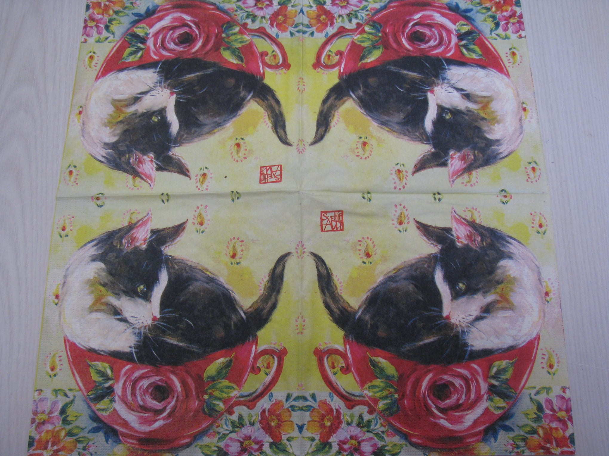Vhodné pro ubrouskovou techniku. Ubrousky mají buď dvě nebo tři vrsty. Pro tvoření se používá vrchní potištěná vrstva. Vhodné na dřevo, sklo, kov, plast...