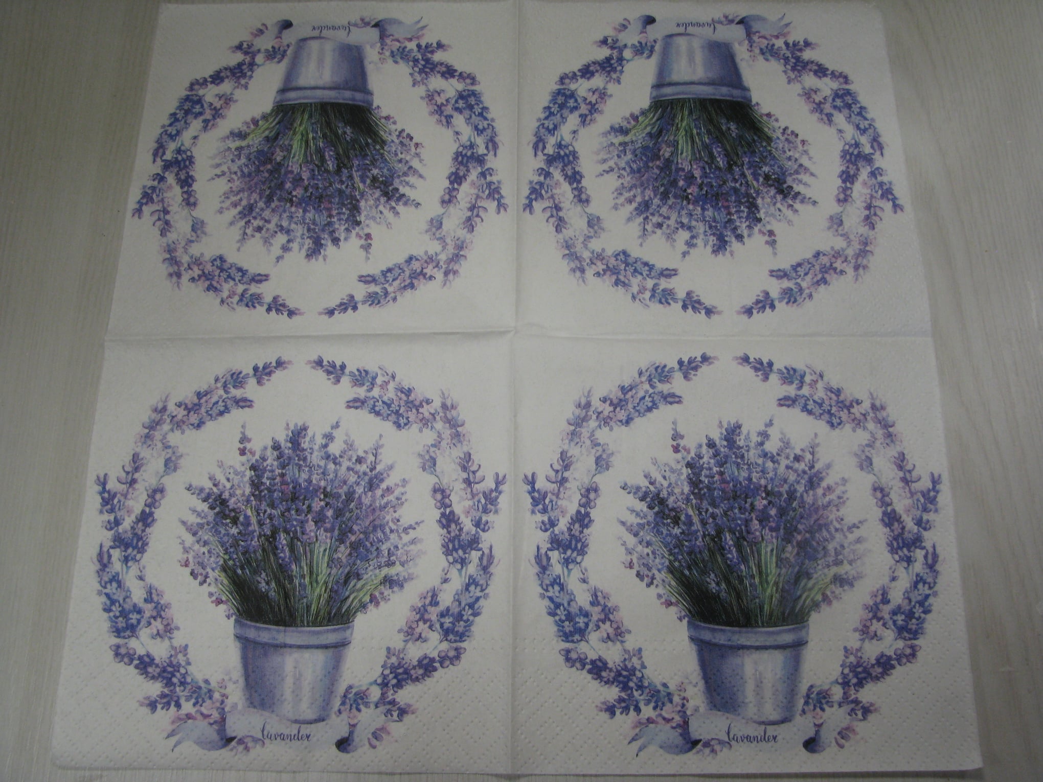 Vhodné pro ubrouskovou techniku. Ubrousky mají buď dvě nebo tři vrsty. Pro tvoření se používá vrchní potištěná vrstva. Vhodné na dřevo, sklo, kov, plast...
