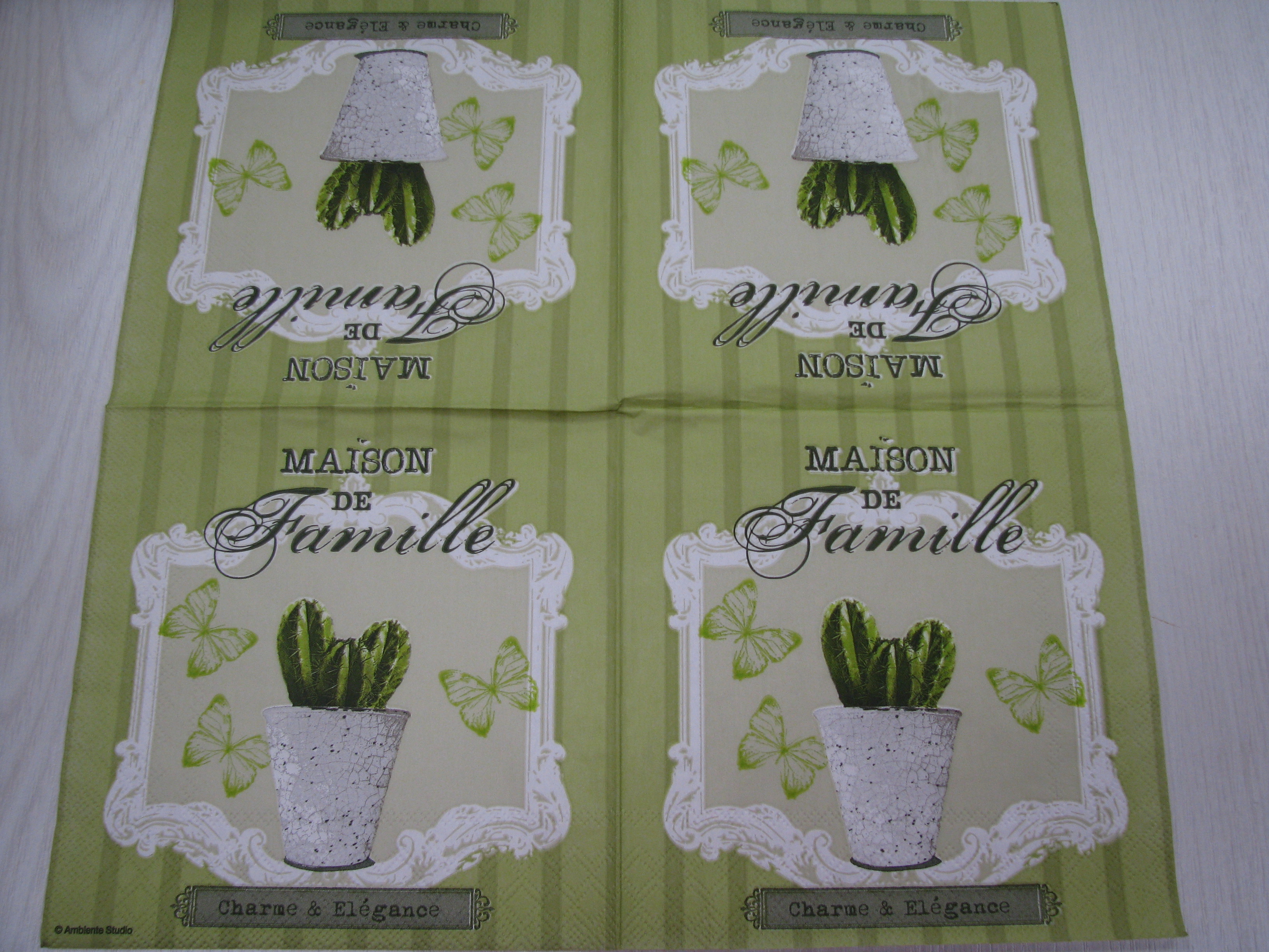 Vhodné pro ubrouskovou techniku. Ubrousky mají buď dvě nebo tři vrsty. Pro tvoření se používá vrchní potištěná vrstva. Vhodné na dřevo, sklo, kov, plast...
