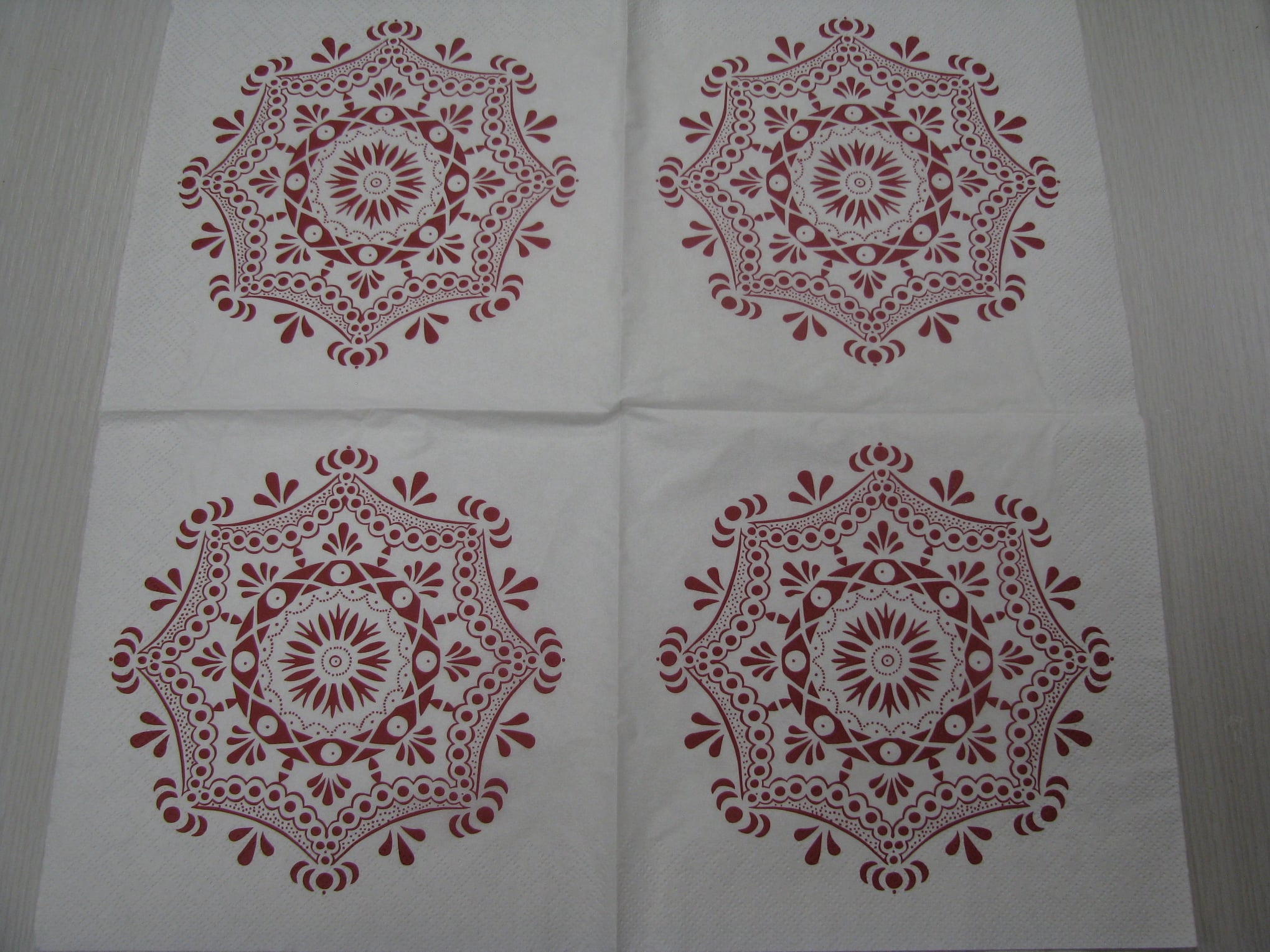 Vhodné pro ubrouskovou techniku. Ubrousky mají buď dvě nebo tři vrsty. Pro tvoření se používá vrchní potištěná vrstva. Vhodné na dřevo, sklo, kov, plast... Ubrousek o rozměru 33 x 33 cm. celý popis