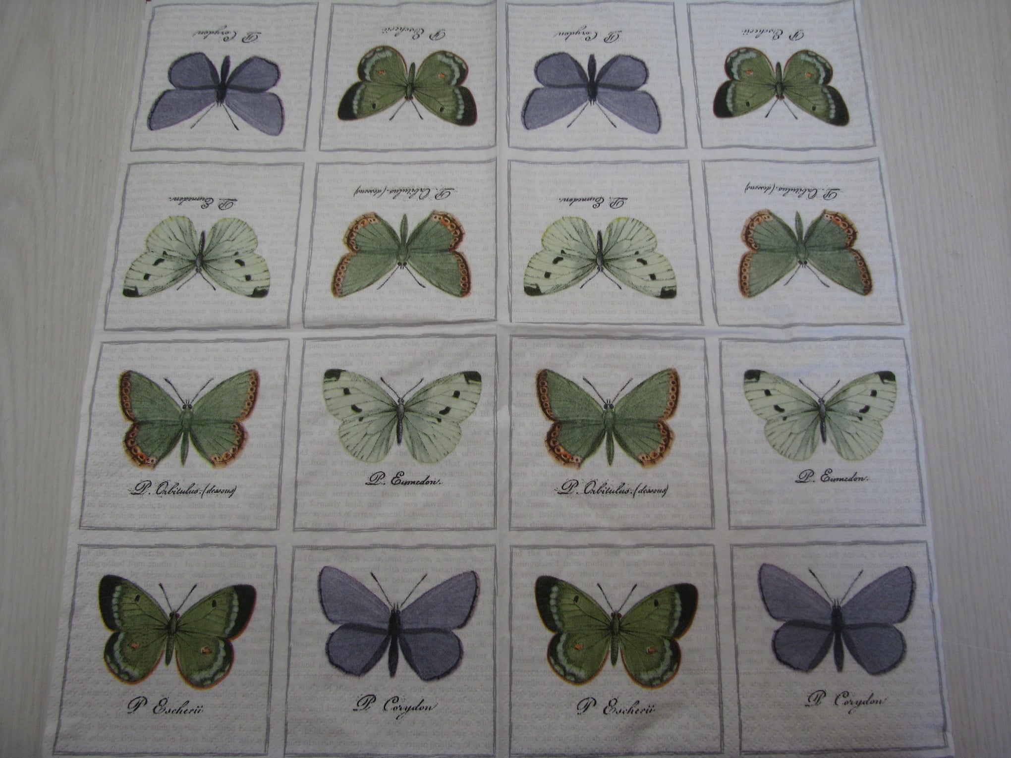Vhodné pro ubrouskovou techniku. Ubrousky mají buď dvě nebo tři vrsty. Pro tvoření se používá vrchní potištěná vrstva. Vhodné na dřevo, sklo, kov, plast...
