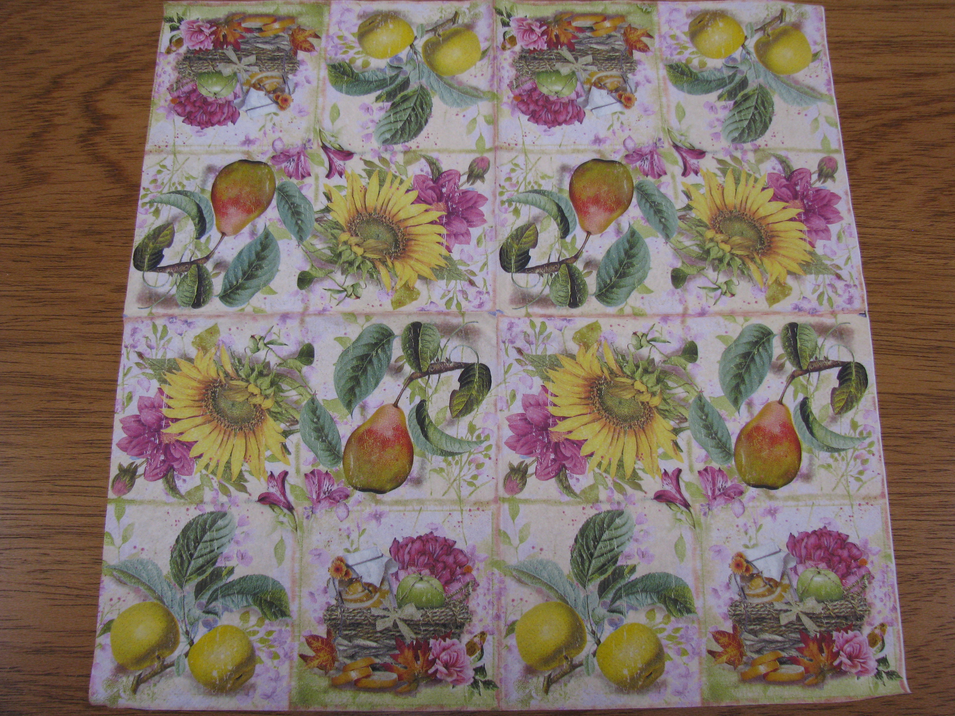 Vhodné pro ubrouskovou techniku. Ubrousky mají buď dvě nebo tři vrsty. Pro tvoření se používá vrchní potištěná vrstva. Vhodné na dřevo, sklo, kov, plast... Ubrousek o rozměru 33 x 33 cm. celý popis