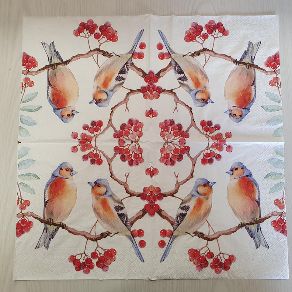 Vhodné pro ubrouskovou techniku. Ubrousky mají buď dvě nebo tři vrsty. Pro tvoření se používá vrchní potištěná vrstva. Vhodné na dřevo, sklo, kov, plast...