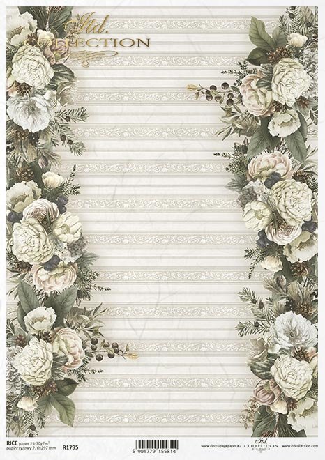 Rýžový papír značky IDT Collection ve velikosti A4. Velice snadné lepení jako u ubrousků. Rýžový papír nemá žádné vrstvy, které by se musely strhávat, nemusí se předem namáčet, takže jen přiložíte na dekorovaný předmět a přetřete lepidlem. Výhodou je, že se při lepení netrhá ani nemačká. Vysoce kva... celý popis