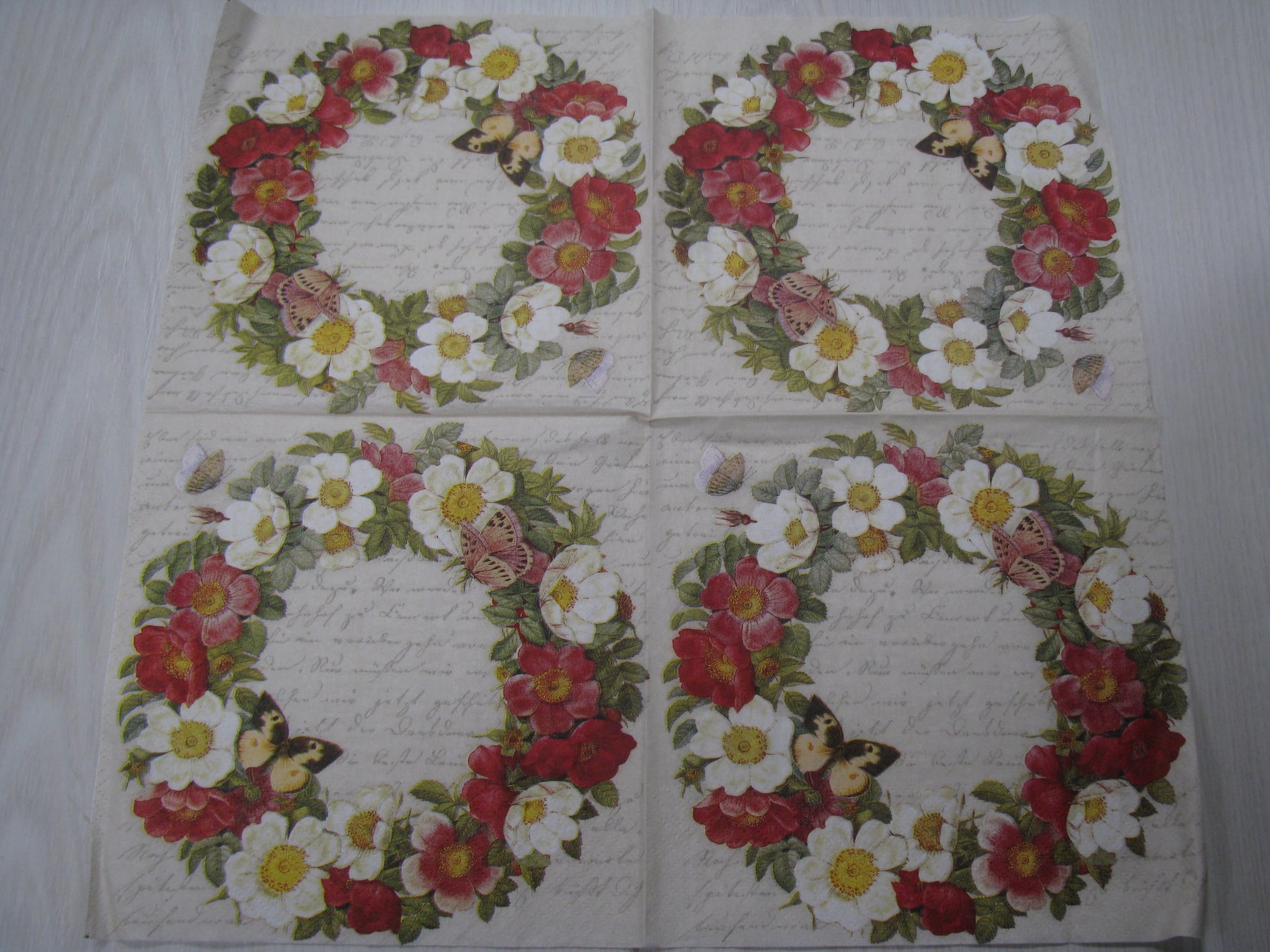 Vhodné pro ubrouskovou techniku. Ubrousky mají buď dvě nebo tři vrsty. Pro tvoření se používá vrchní potištěná vrstva. Vhodné na dřevo, sklo, kov, plast...