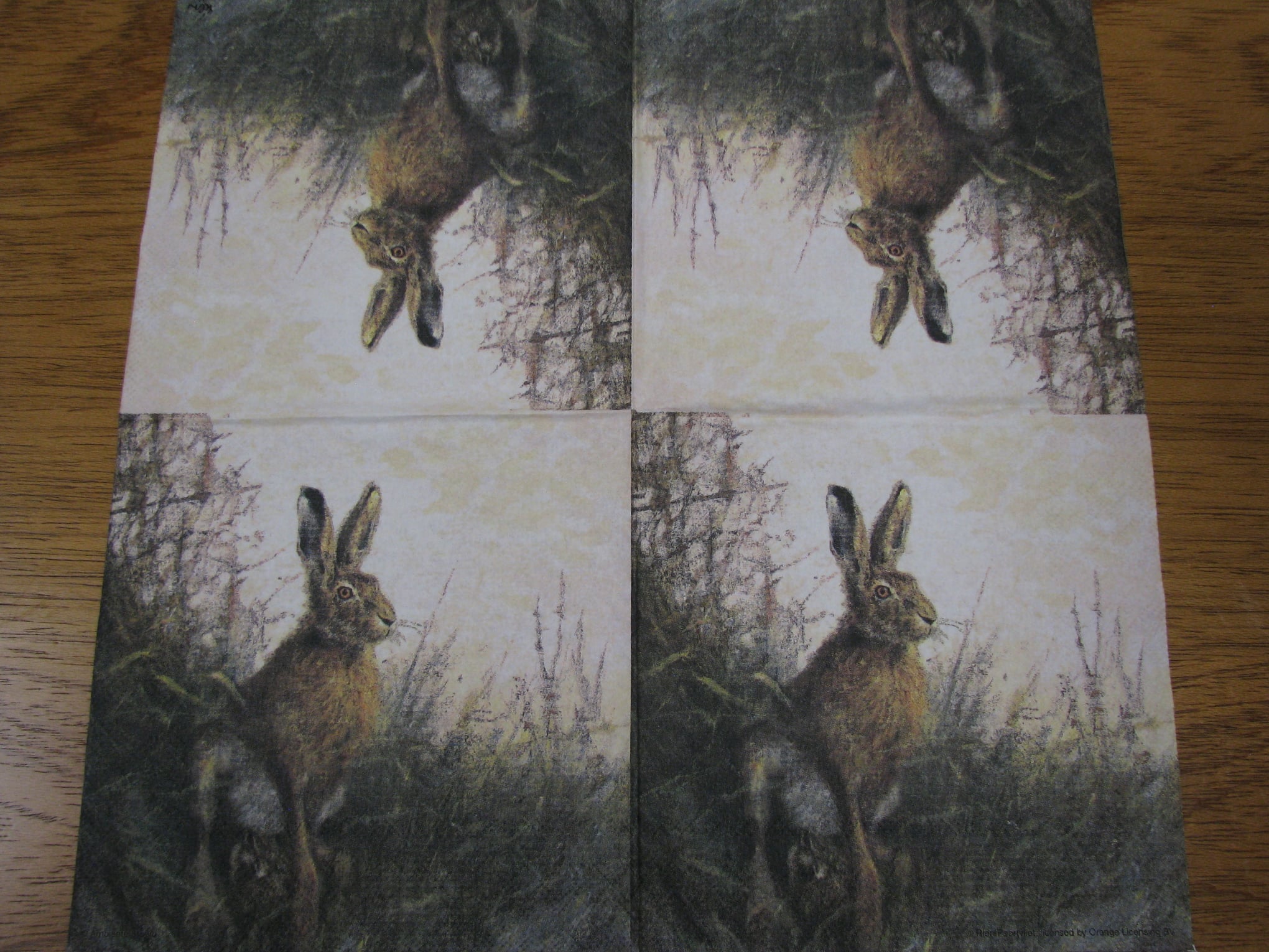 Vhodné pro ubrouskovou techniku. Ubrousky mají buď dvě nebo tři vrsty. Pro tvoření se používá vrchní potištěná vrstva. Vhodné na dřevo, sklo, kov, plast...