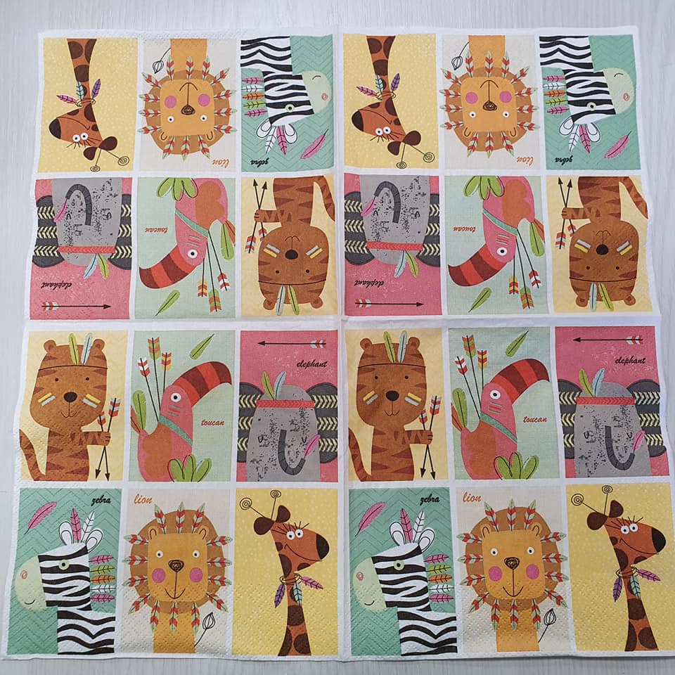 Vhodné pro ubrouskovou techniku. Ubrousky mají buď dvě nebo tři vrsty. Pro tvoření se používá vrchní potištěná vrstva. Vhodné na dřevo, sklo, kov, plast...