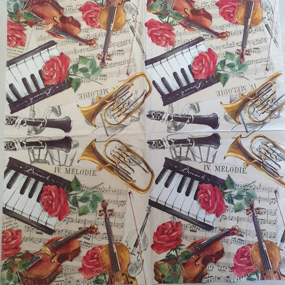 Vhodné pro ubrouskovou techniku. Ubrousky mají buď dvě nebo tři vrsty. Pro tvoření se používá vrchní potištěná vrstva. Vhodné na dřevo, sklo, kov, plast... Ubrousek o rozměru 33 x 33 cm. celý popis