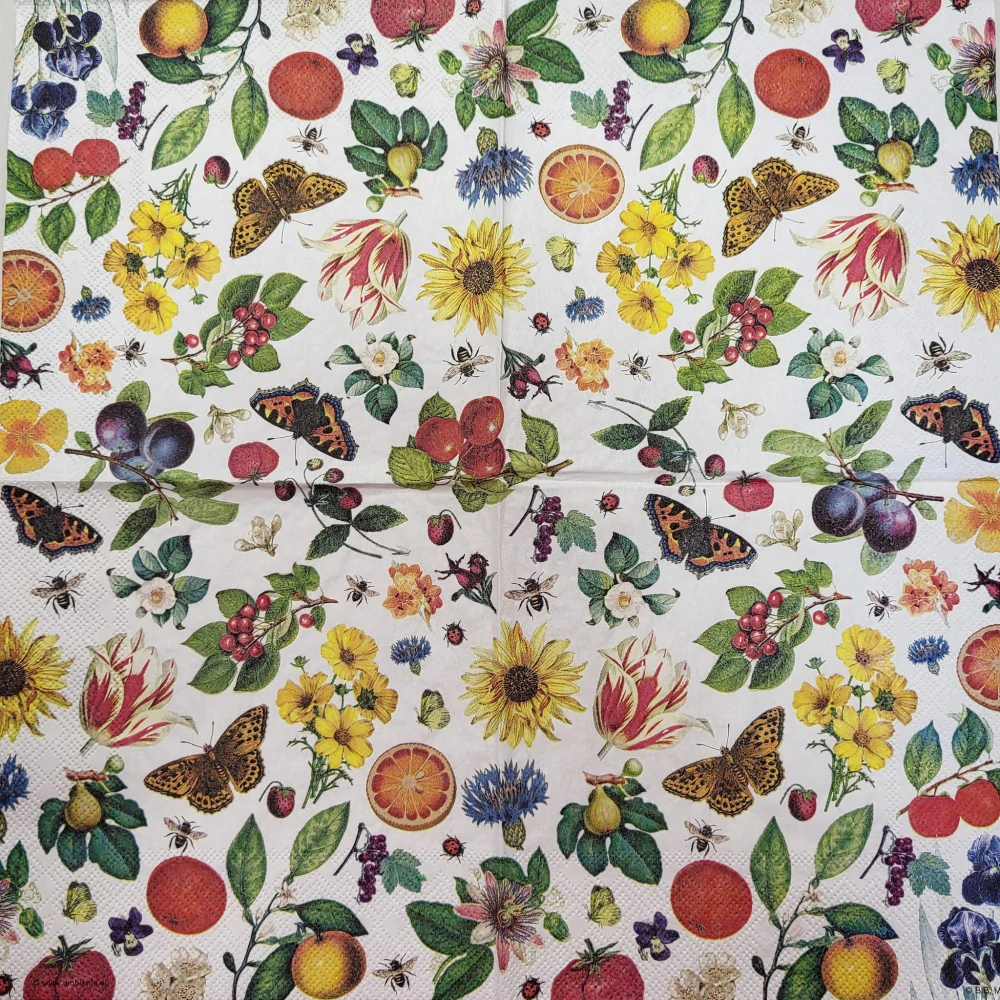 Vhodné pro ubrouskovou techniku. Ubrousky mají buď dvě nebo tři vrsty. Pro tvoření se používá vrchní potištěná vrstva. Vhodné na dřevo, sklo, kov, plast... Ubrousek o rozměru 33 x 33 cm. celý popis
