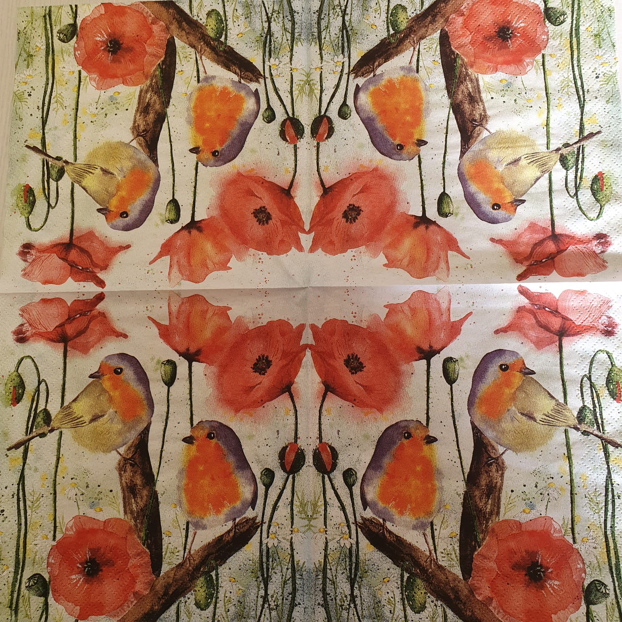 Vhodné pro ubrouskovou techniku. Ubrousky mají buď dvě nebo tři vrsty. Pro tvoření se používá vrchní potištěná vrstva. Vhodné na dřevo, sklo, kov, plast...