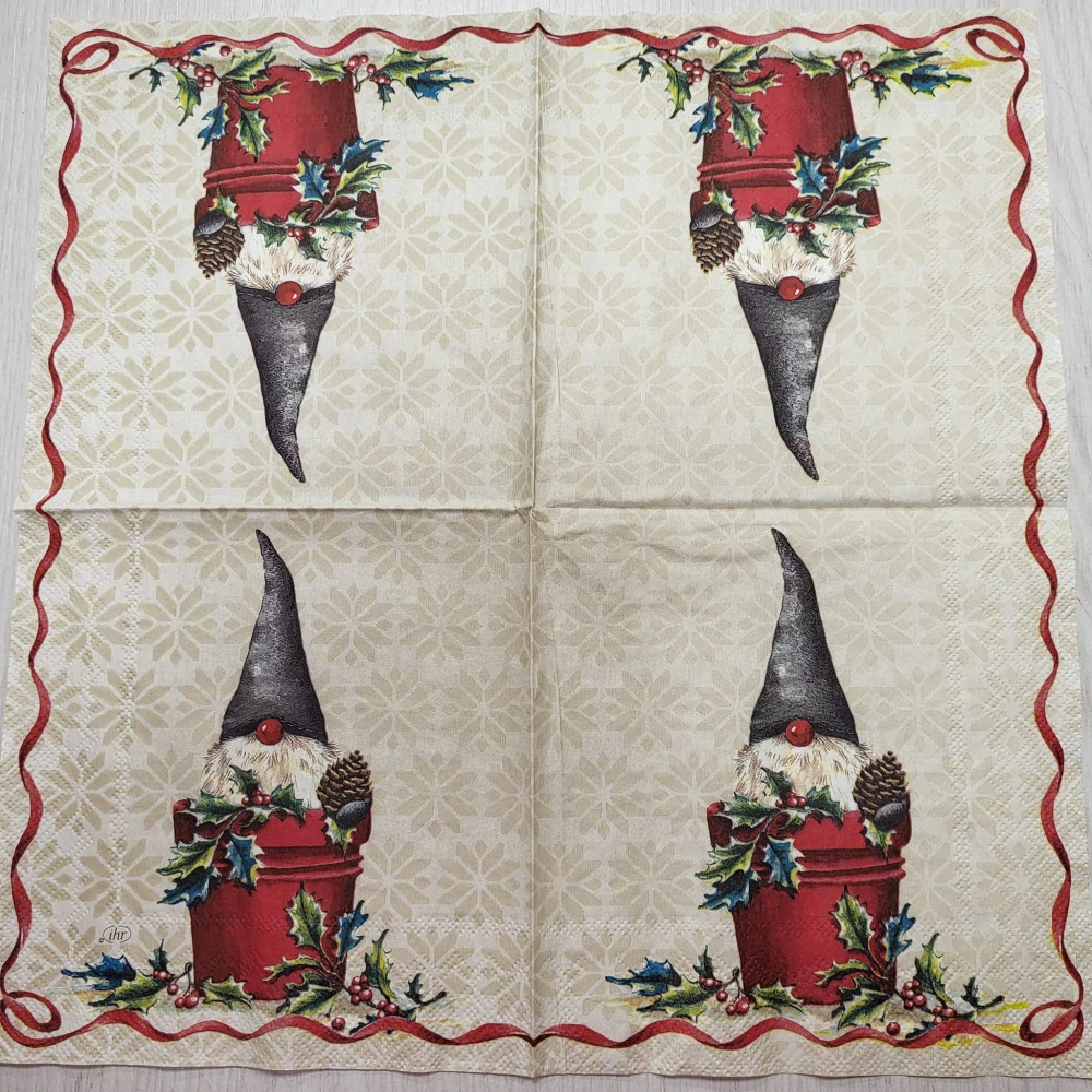Vhodné pro ubrouskovou techniku. Ubrousky mají buď dvě nebo tři vrsty. Pro tvoření se používá vrchní potištěná vrstva. Vhodné na dřevo, sklo, kov, plast...