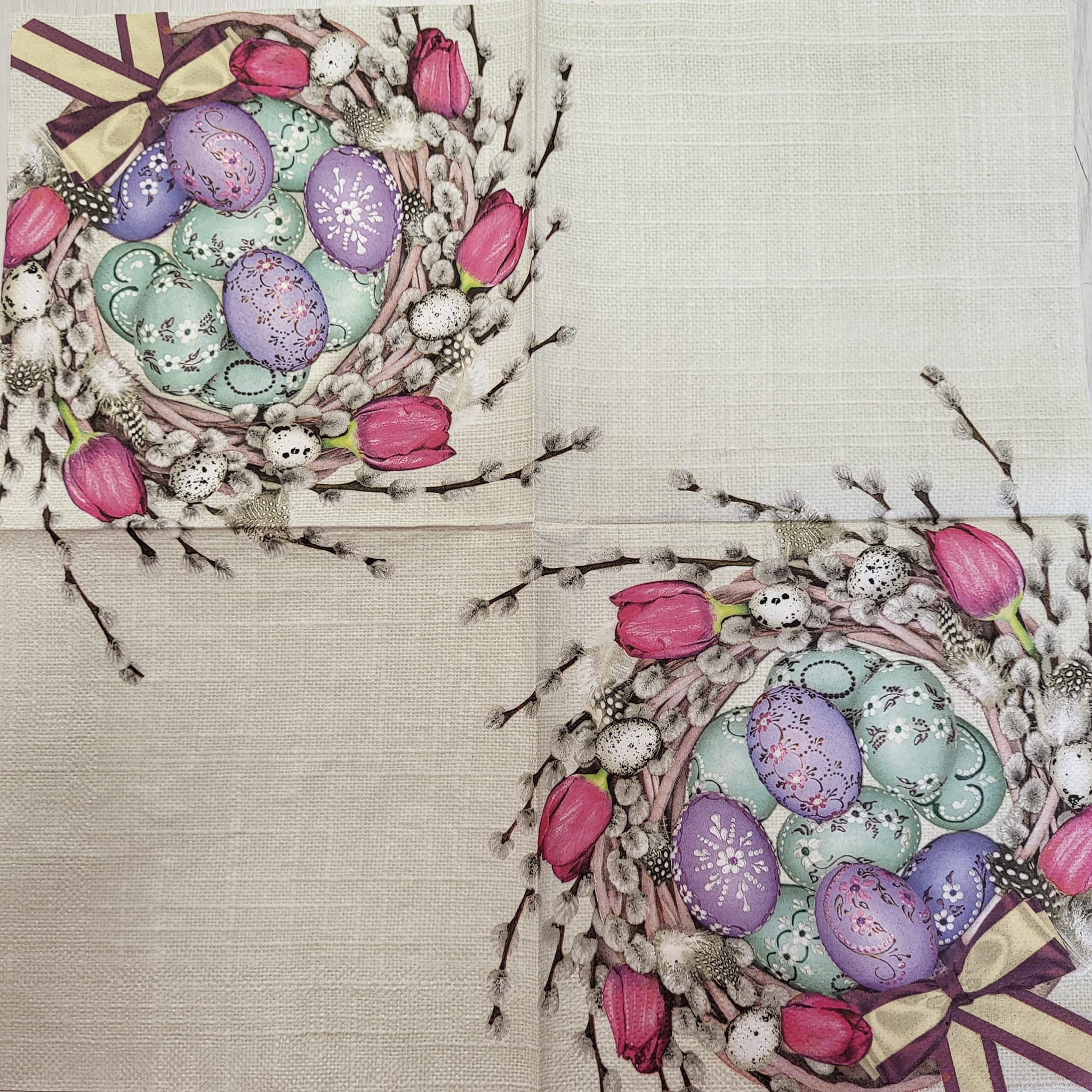 Vhodné pro ubrouskovou techniku. Ubrousky mají buď dvě nebo tři vrsty. Pro tvoření se používá vrchní potištěná vrstva. Vhodné na dřevo, sklo, kov, plast...